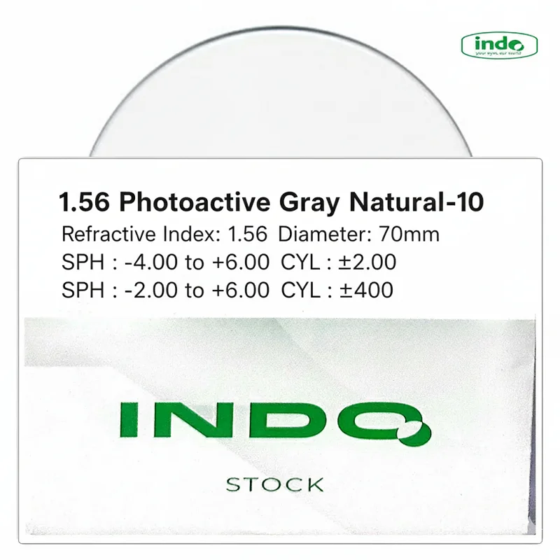 عدسی عینک ایندو INDO مدل 1.56 Photoactive Gray Natural-10 | فتوکرومیک با پوشش ضدخش و...