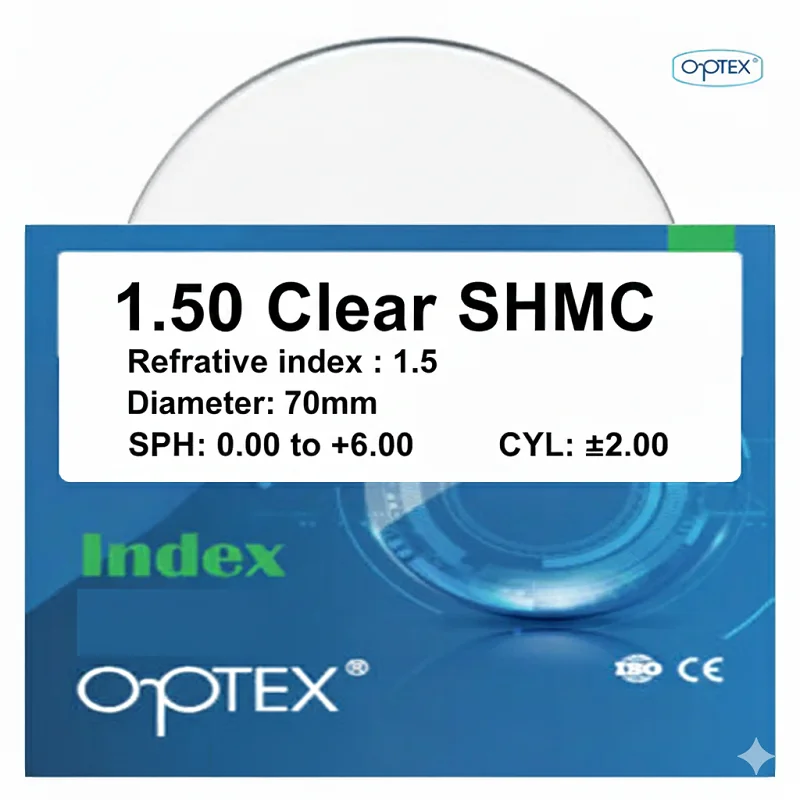 عدسی عینک Optex 1.50 Clear SHMC با ضریب شکست 1.5 و قطر 70 میلیمتر، انتخابی سبک و مقاوم با پوشش ضدخش است. محدوده نمره (SPH 0.00 تا +6.00 / CYL ±2.00) دارد و مناسب برای استفاده روزمره.