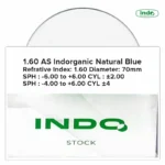 عدسی عینک INDO 1.60 AS Indorganic Natural Blue با ضریب شکست 1.6 و قطر 70 میلیمتر، انتخابی مقاوم با پوشش ضدخش و محافظت UV است. این محصول دارای دو محدوده نمره SPH و مناسب برای نسخههای مختلف اپتومتری میباشد.